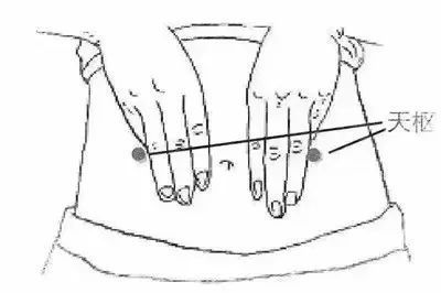位置:天枢穴位于腹部,脐两旁三指的距离。